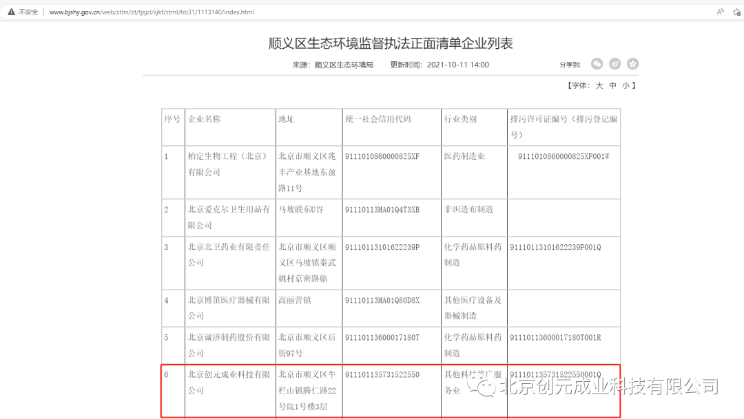 创元成业荣膺“生态环境监督执法正面清单企业”发表时间:2022-11-15 15:56 北京创元成业科技有限公司于2021年10月,正式入选“顺义区生态环境监督执法正面清单企业”,此次入选是对创元成业极大的肯定。